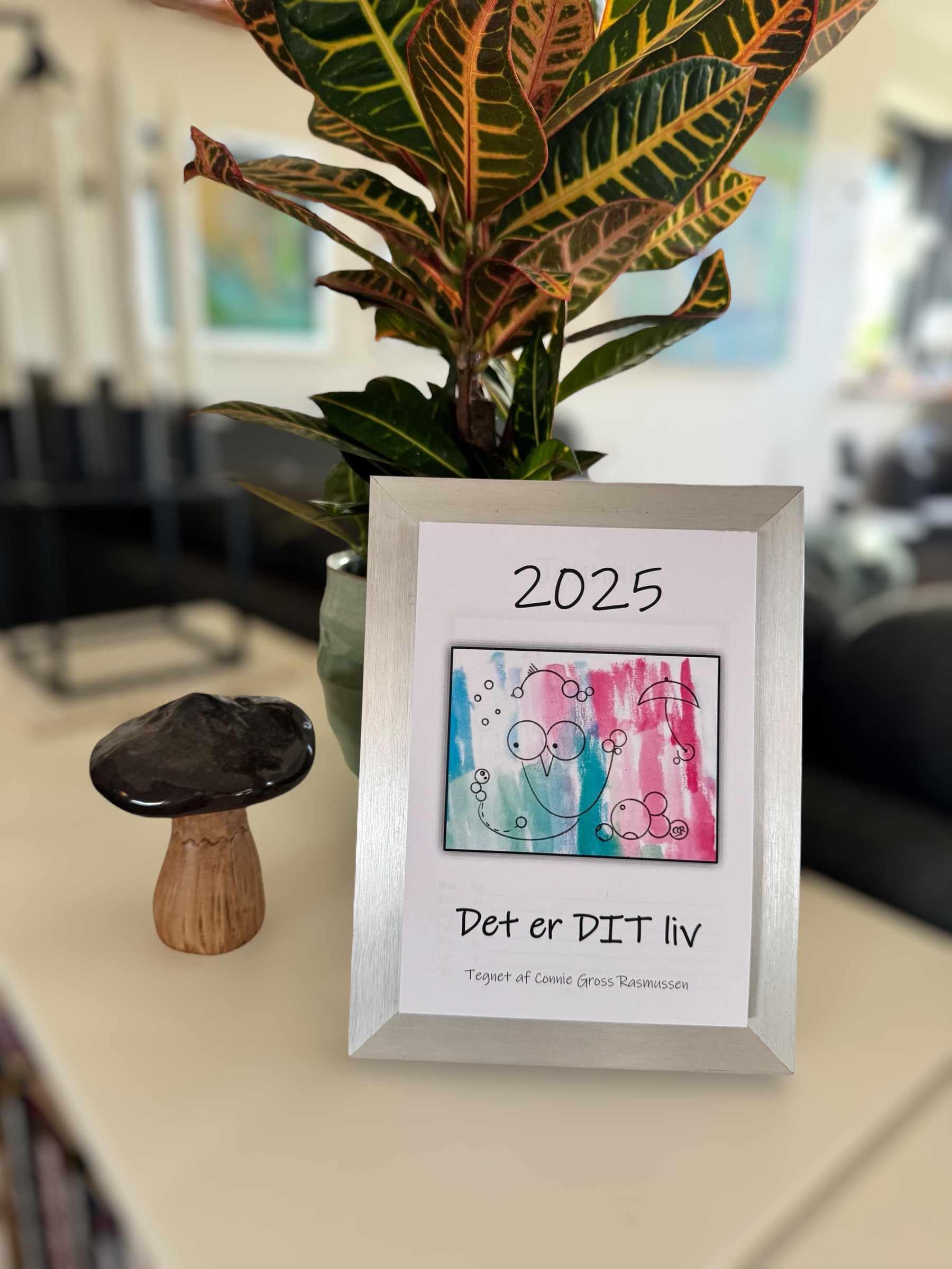 Kalender i børstet stål ramme – 15 x 20 cm.